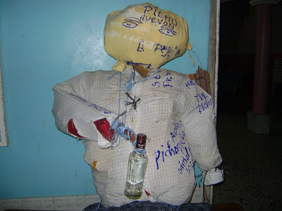 Contrario a lo que sucede en las grandes ciudades de Honduras donde los monigotes representan a las figuras pública, en esta comunidad se hace alusión a ninguna personalidad en particular, sino que los pichingos se hacen de manera general representando al año viejo que concluirá.